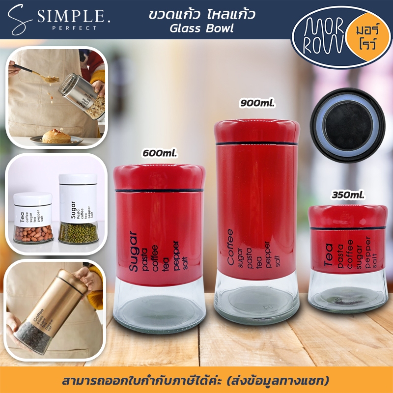 MORROW : ขวดโหลแก้วกลมฝาเกลียว 3ขนาด ขวดใส่เครื่องปรุง ฝาขาว แก้วหุ้มสแตนเลส simpleperfect