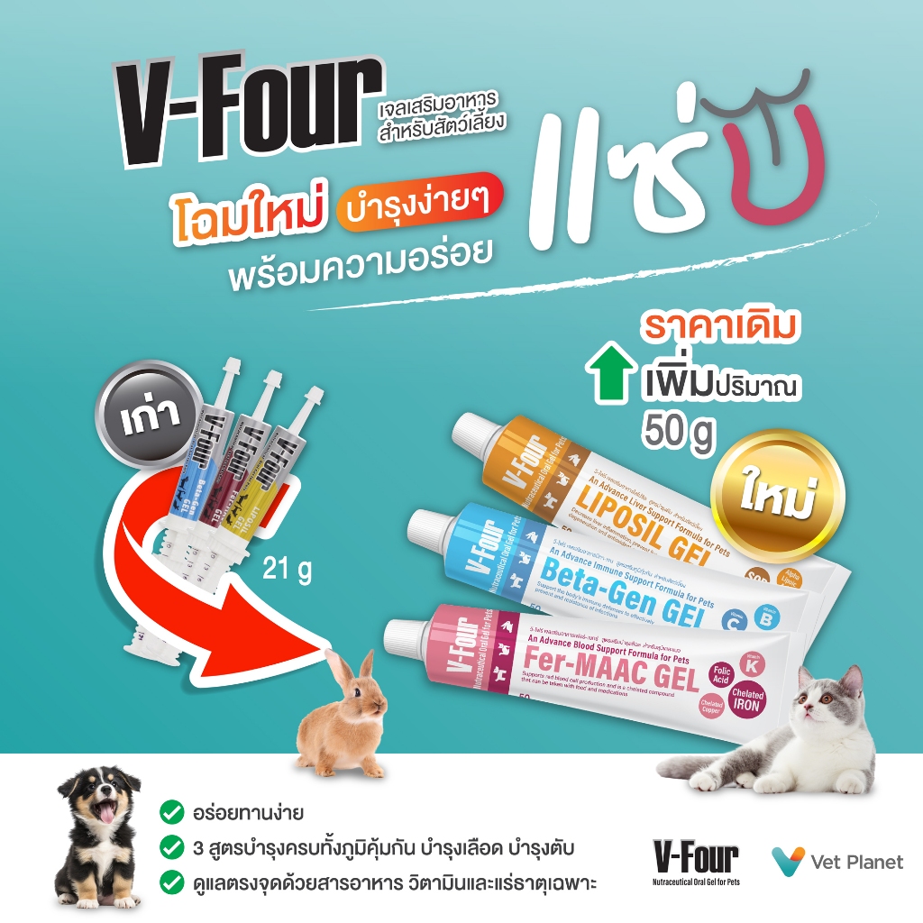 V-Four [แท้💯] ใหม่! เจลเสริมอาหารสำหรับสัตว์เลี้ยง Beta-Gen / Liposil / Fer-MAAC Gel 50 g. (vfour)