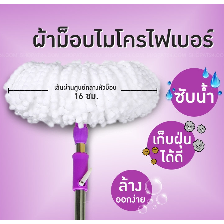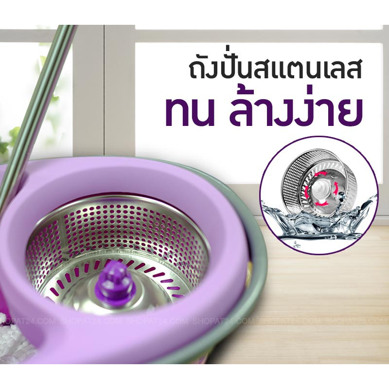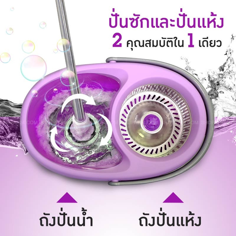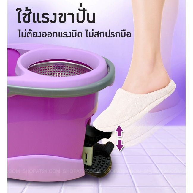 ชุดถังปั่น พร้อมไม้ม็อบ มีแท่นเหยียบ BE WISH รุ่น STAINLESS PLUS สีม่วง HA-33W