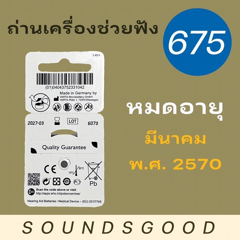 OTICON ถ่านเครื่องช่วยฟัง เบอร์ 675 (สีน้ำเงิน) ผลิตจากเยอรมนี hearing aid battery