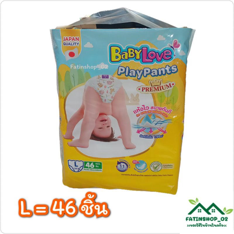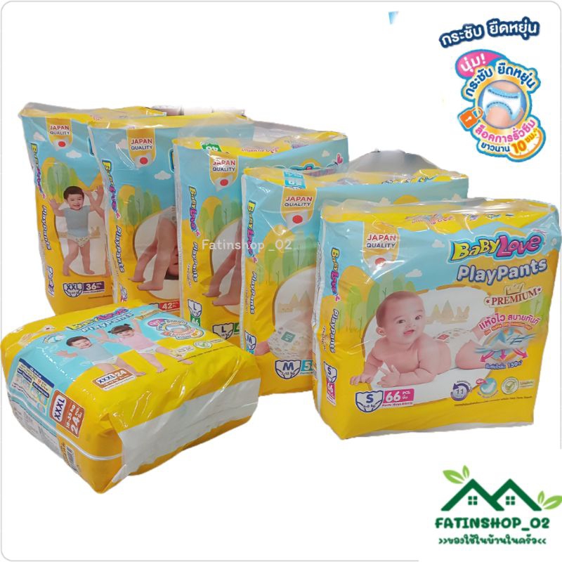 ผ้าอ้อมเบบี้เลิฟ เพลย์แพ้นท์ พรีเมี่ยม เบบี้เหลืองสูตรซึมซับยาวนานได้ถึง10ชม.