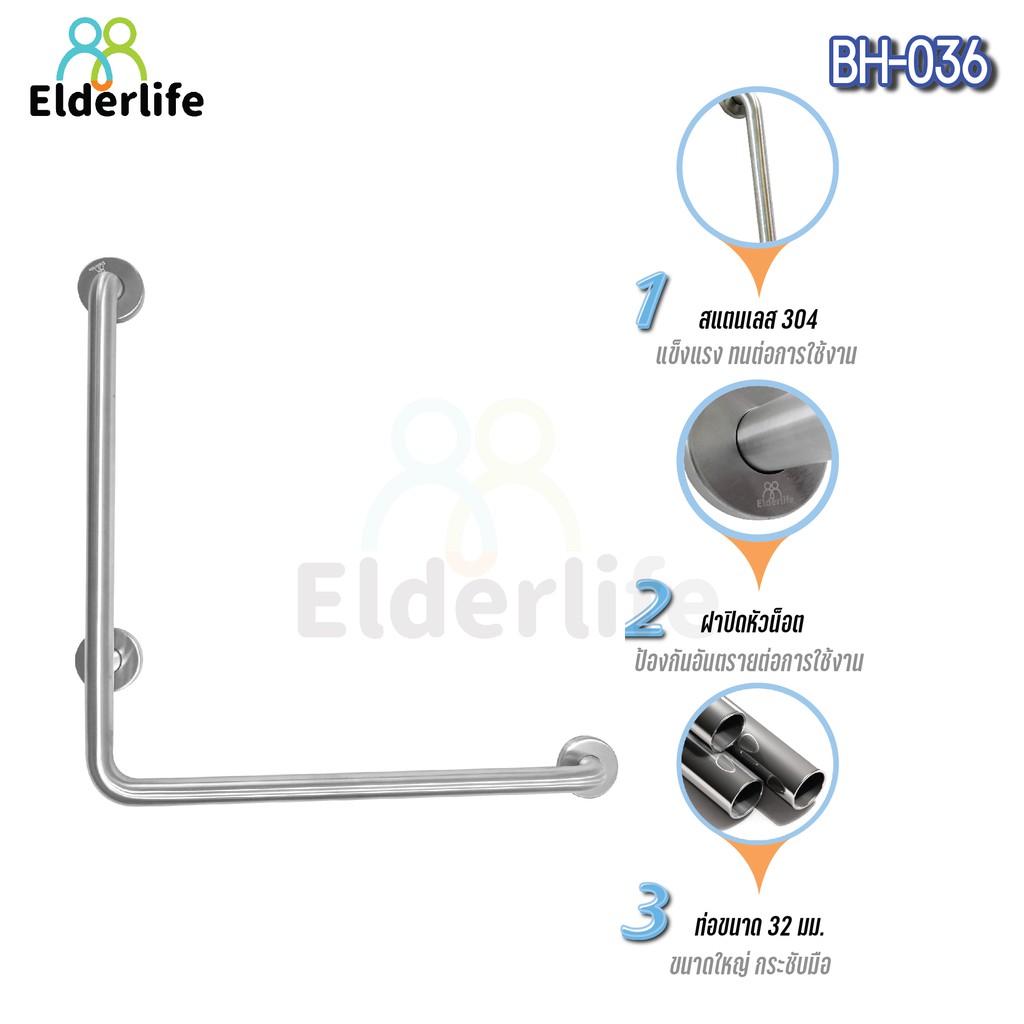 ราวจับผู้สูงอายุ 𝐄𝐋𝐃𝐄𝐑𝐋𝐈𝐅𝐄 ราวจับกันลื่น สแตนเลส 304 รูปทรงตัว L รุ่น 𝐁𝐇-𝟎𝟑𝟔