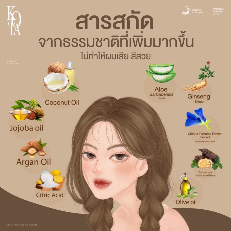(ของแท้+พร้อมส่ง)สีย้อมผมKota🤎มีบัตรตัวแทน สีย้อมผมออร์แกนิคโสมเกาหลี ครีมย้อมผมโคตะ Kota Cosmetics Organic Hair Color