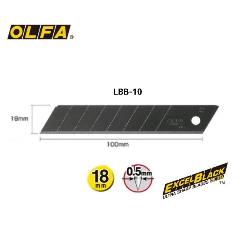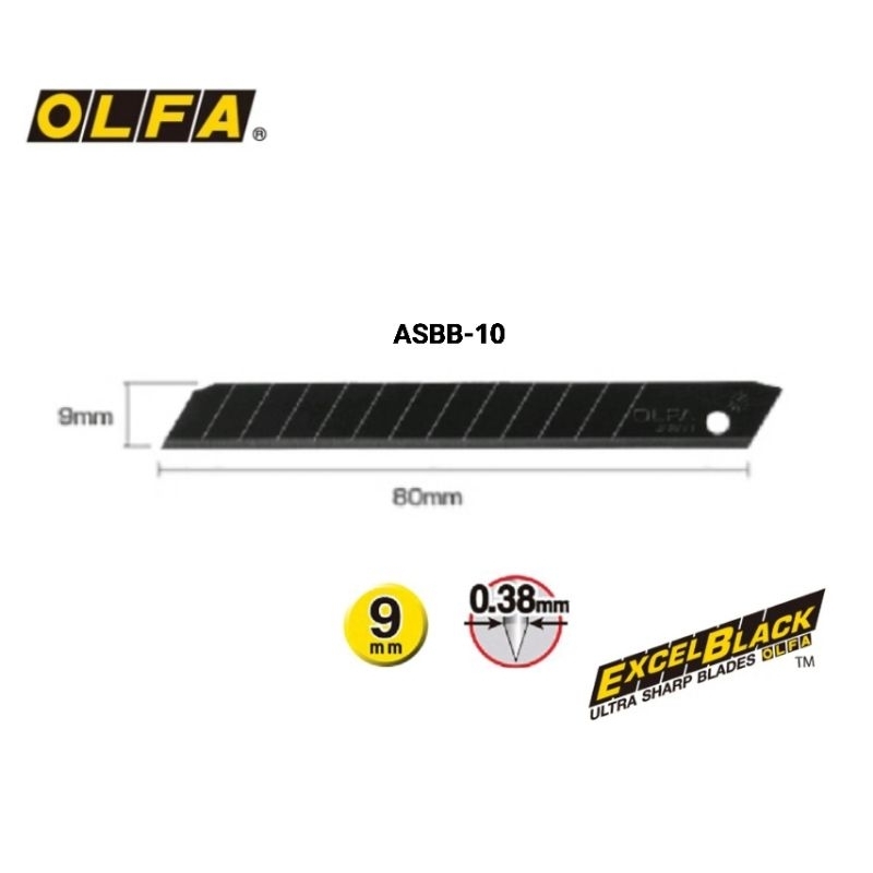 OLFA ใบมีดคัตเตอร์ 45° สีดำ ASBB-10 (9 มม.) และ รุ่น LBB-10 (18 มม.) กันสนิมและคมมาก หลอด