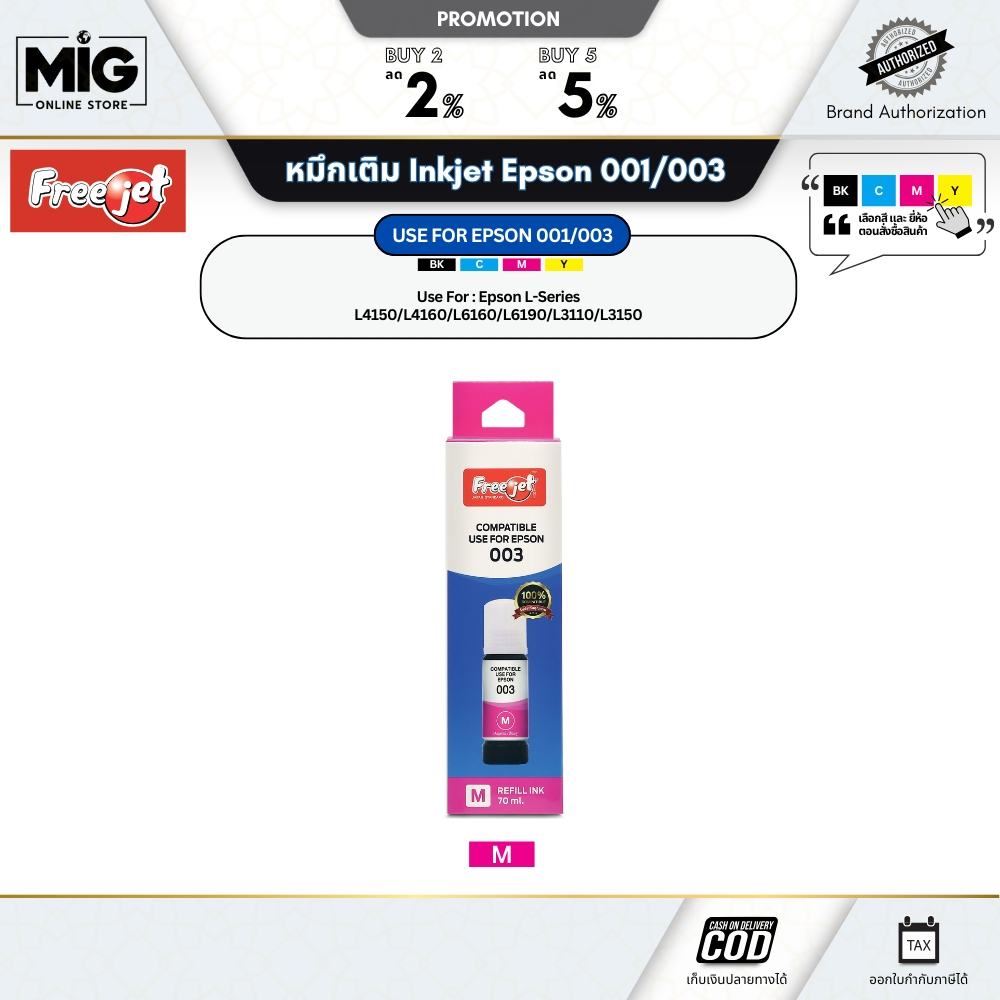 Freejet หมึกเติม Inkjet Printer Epson 001/003/005 สำหรับ Epson L4150/L4160/L6160/L6190/L3110/L3150