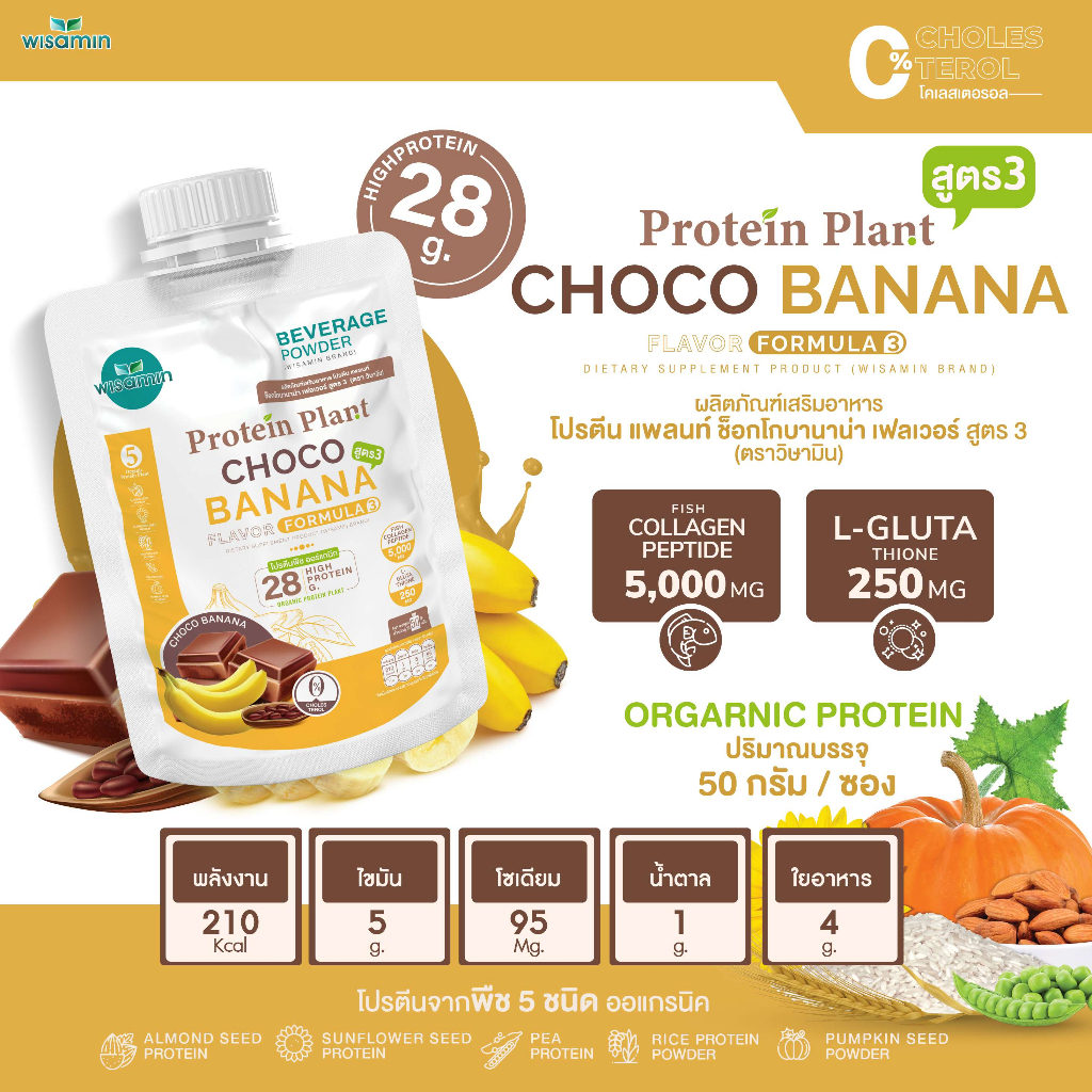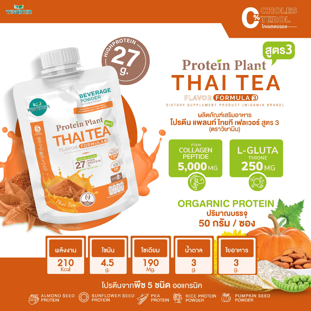 PROTEIN PLANT สูตร 3 (ชนิดซองชงดื่ม 50 กรัม) โปรตีนแพลนท์ มี 11 รสชาติ โปรตีนพืช 5 ชนิด คอลลาเจน เปปไทด์ แอลกลูต้าไธโอน