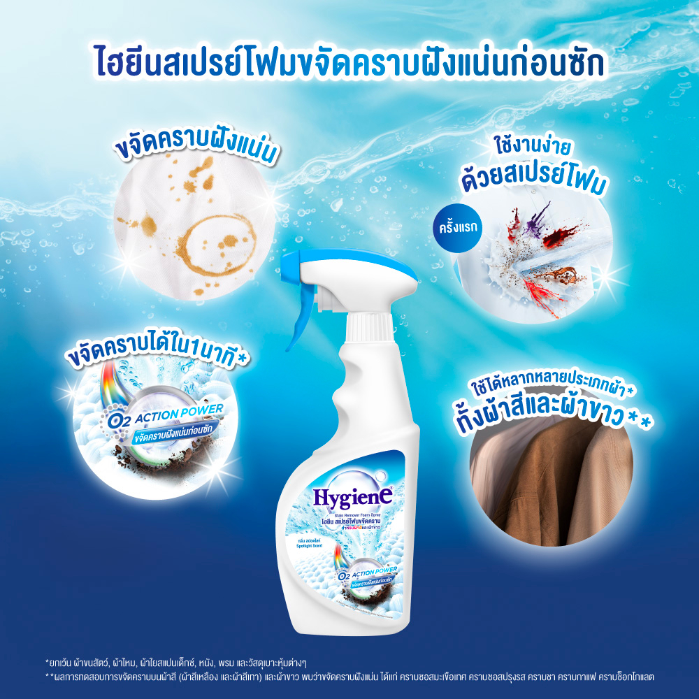 ไฮยีน สเปรย์โฟม กำจัดคราบ สำหรับผ้าขาวและผ้าสี 500 มล.