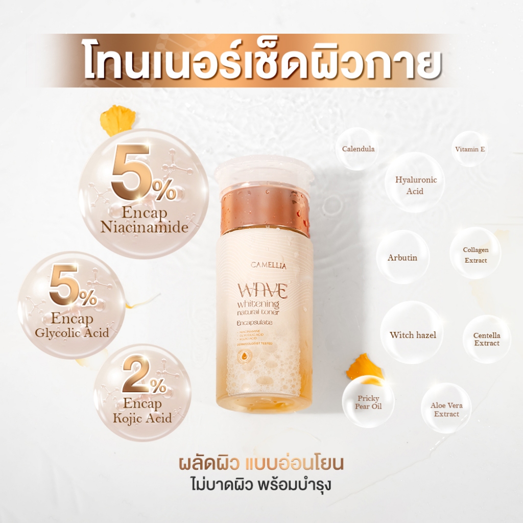 โทนเนอร์เช็ดผิวกาย รักแร้ หลังคอดำ ขาหนีบ ข้อศอก เข่าดำ Toner คามิเลีย โทนเนอร์เช็ดผิวกาย Encap Niacinamide 5%