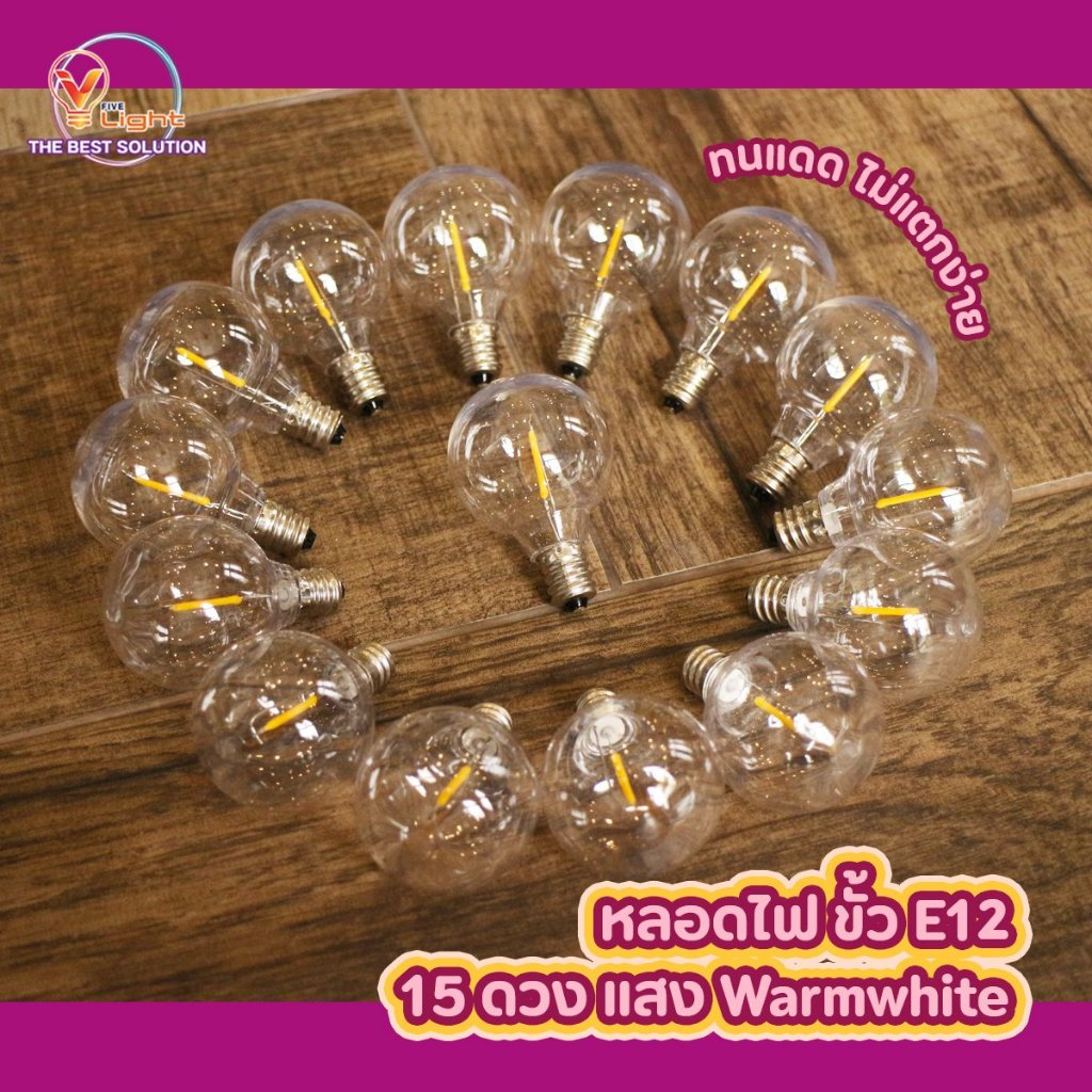 V FIVE LIGHT สายไฟห้อยระย้า โซล่าเซลล์พร้อมแผง หลอดไฟ ขั้วE12