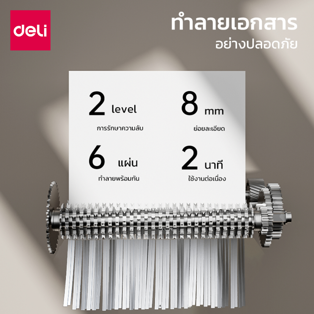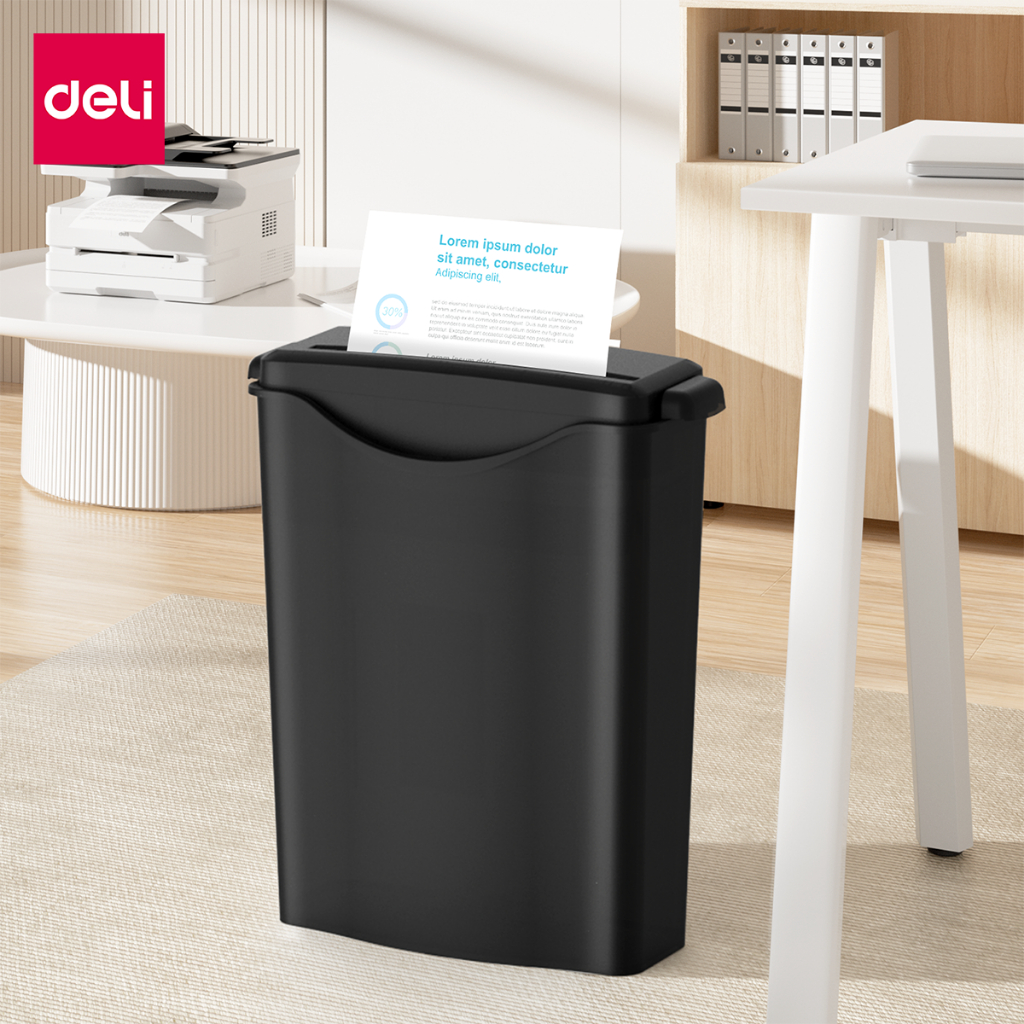 Deli เครื่องทำลายเอกสาร 10 ลิตร เครื่องย่อยเอกสาร ขนาด A4 6 แผ่น ย่อยระดับ2 ปลอดภัย Paper Shredder