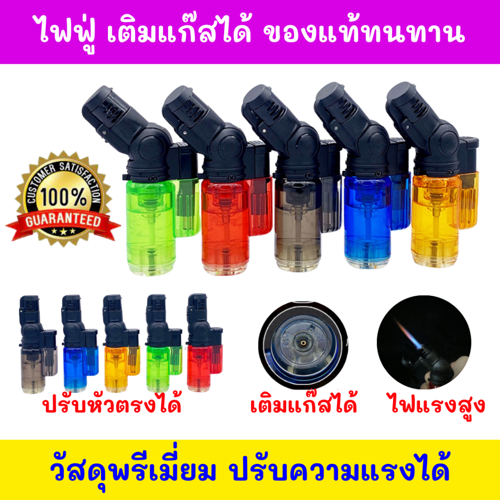 ของแท้ร้านไทย ไฟฟู่ทนทานมาก ล็อคไฟได้ งานเบาสายเขียวได้ ปรับความแรงไฟได้ โดนลมไม่ดับ พกพาสะดวก ใช้งานง่าย เติมแก๊สได้