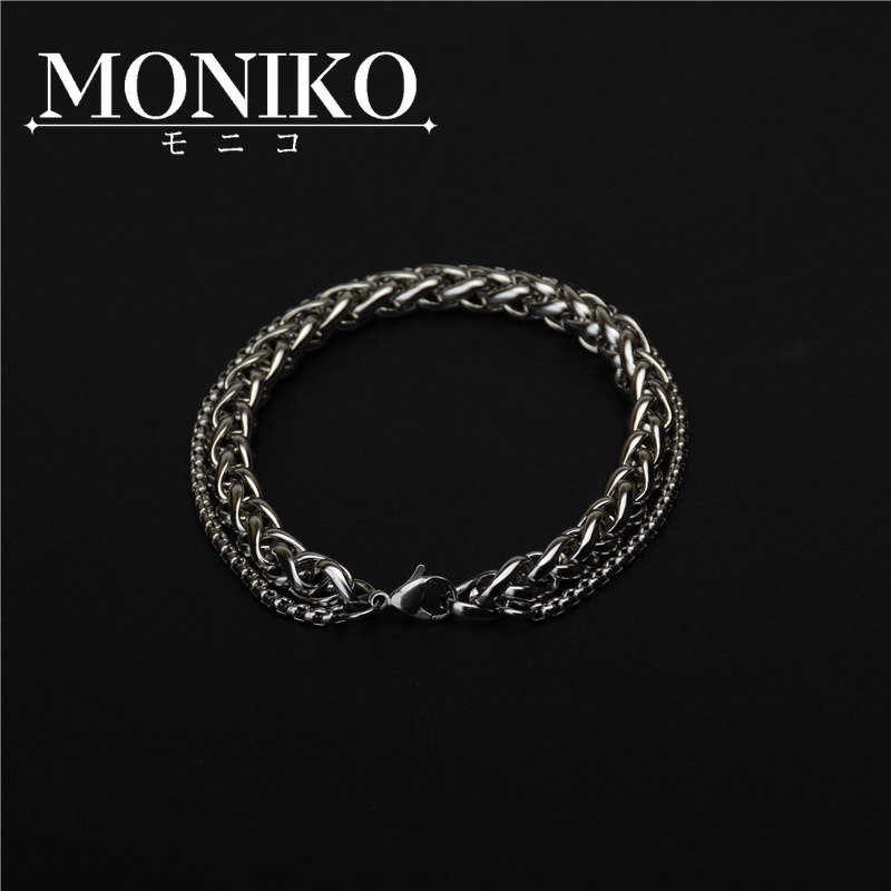 MONIKOสร้อยข้อมือเหล็กไทเทเนียมบุรุษสีเงิน
