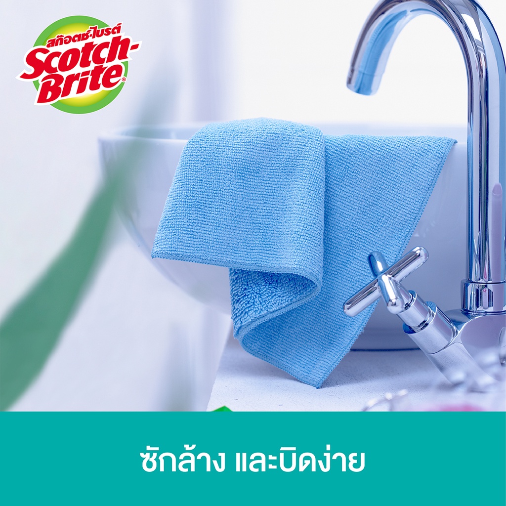 3M™ Scotch-Brite® สก๊อตช์-ไบรต์ ผ้าไมโครไฟเบอร์สำหรับห้องน้ำ, ดูดซับน้ำได้ 8 เท่า, ขนาด 32x32 ซม.