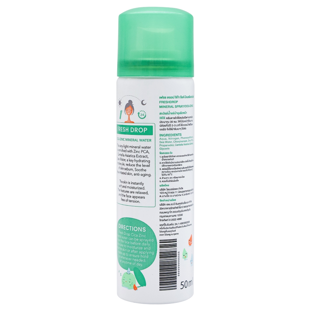 [Exclusive] FRESH DROP - Mineral Spray #Cica Zinc (50 ml.) สเปรย์น้ำแร่