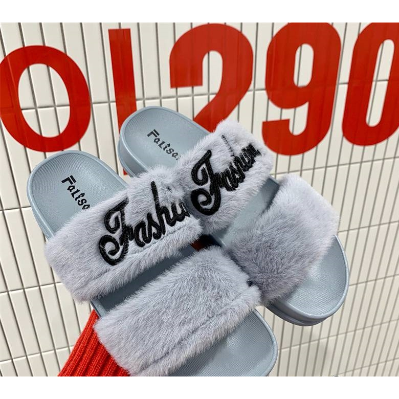 Falisar รองเท้าแตะผู้หญิง แฟชั่นขนเฟอร์สองตอน รุ่น 0129-2
