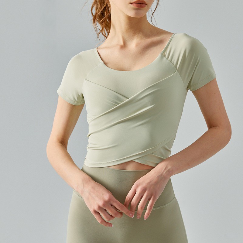 เสื้อยืดออกกําลังกายกระชับสัดส่วนแขนสั้นผู้หญิงเบาะ