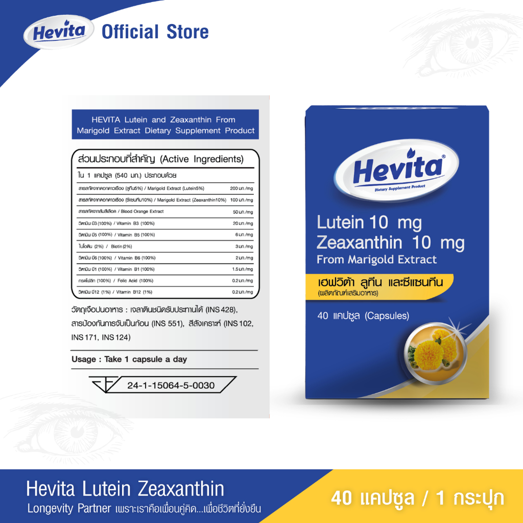 Hevita Lutein & Zeaxanthin Marigold Extract วิตามินบำรุงสายตา ลดตาแห้งล้า สารสกัดจากดอกดาวเรือง (40 แคปซูล)