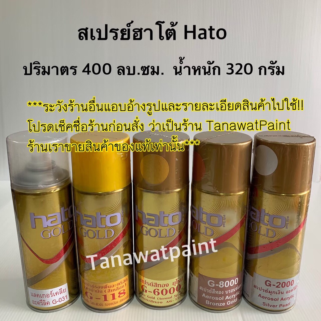 Hato สีสเปรย์ฮาโต้ เคลือบเงา G-031 รองพื้นทอง G-118 สีทอง G-6000 สีทองแดง G-8000 สีมุกเงิน G-2000 สีทาวัด สเปรย์ สีฮาบช