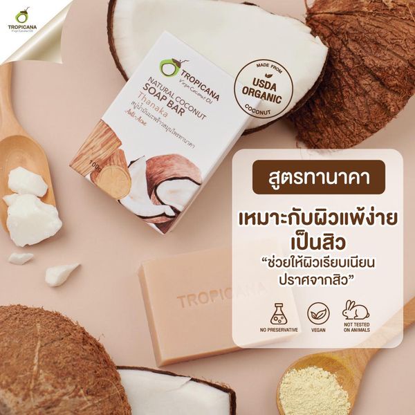 Tropicana | ทรอปิคานา สบู่ก้อนน้ำมันมะพร้าวและสมุนไพรทานาคา 100 G