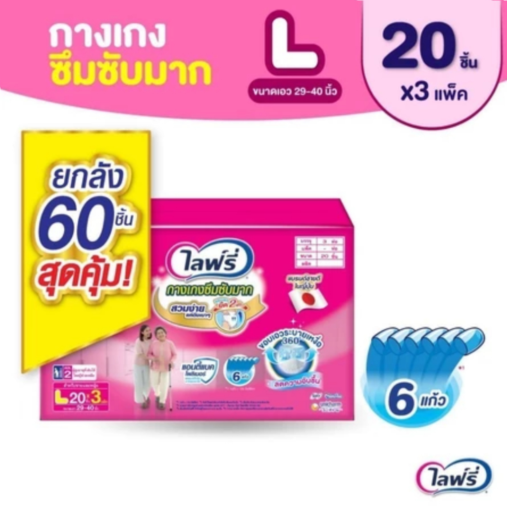 (ขายยกลัง 3 ห่อ) Lifree ไลฟ์รี่ ผ้าอ้อมสำเร็จรูปแบบกางเกงซึมซับ (Size M, L, XL, XXL)