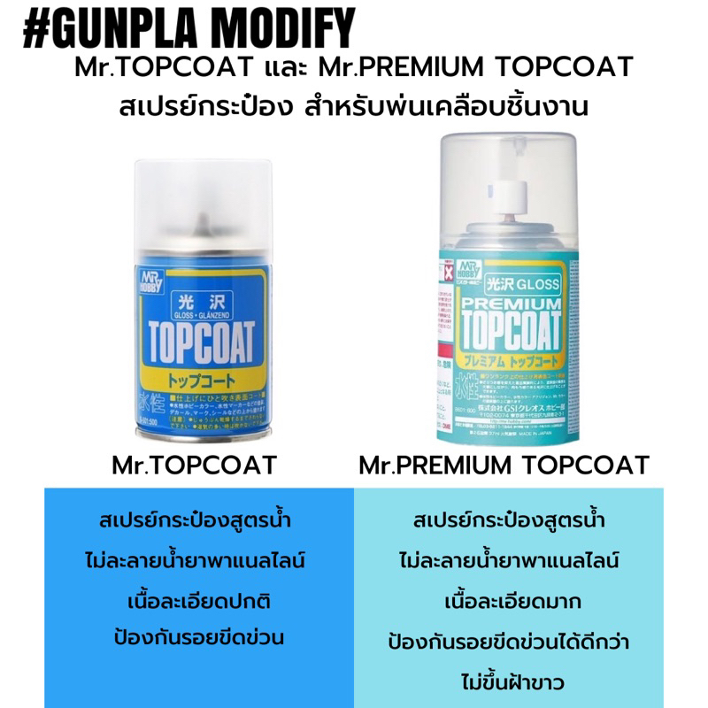 MR.PREMIUM TOPCOAT (GLOSS, SEMI-GLOSS, FLAT) สเปรย์เคลียร์สูตรน้ำกระป๋องขนาด 37 ml