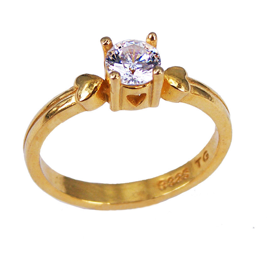 Tips Gallery แหวน เงินแท้ 925 หุ้มทอง 24 K ประดับ เพชร CZ Hearst & Arrows 0.5 กะรัต Heart Bling Design TRS135