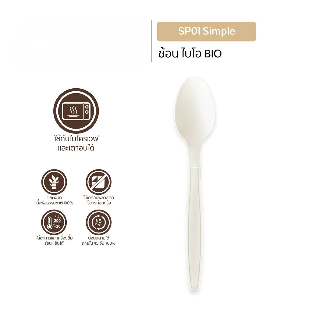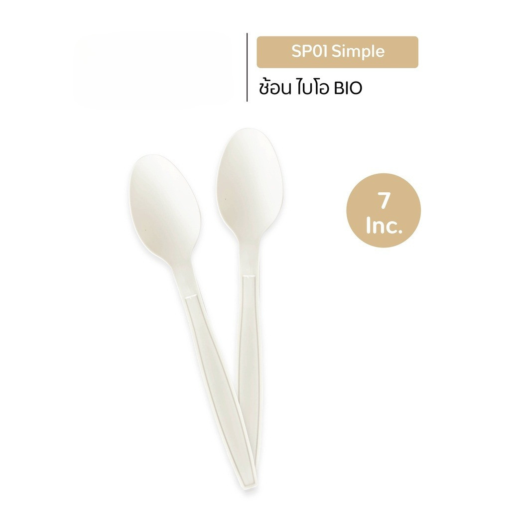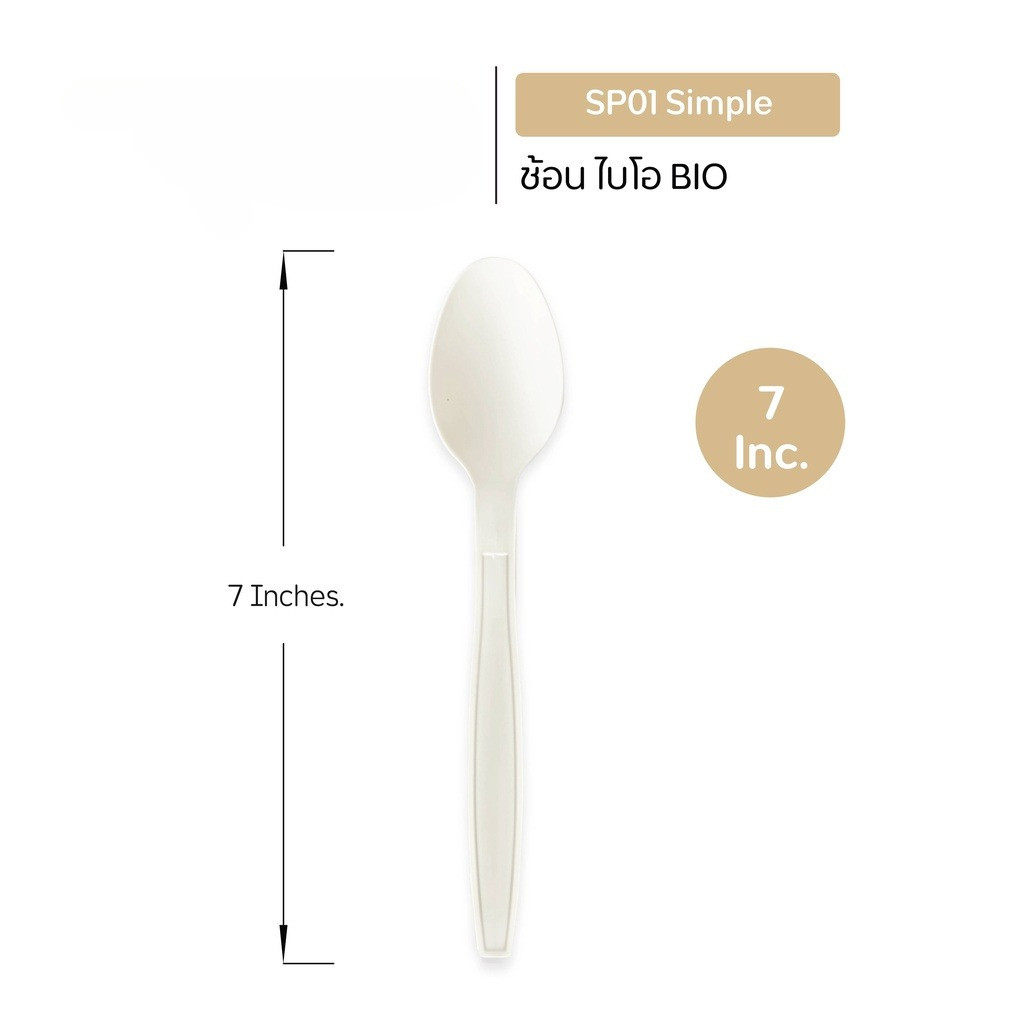 (แพ็ค) ช้อน 7 นิ้ว ช้อนไบโอ ใช้แล้วทิ้ง แบบพลาสติก ย่อยสลายได้ [20KA201]