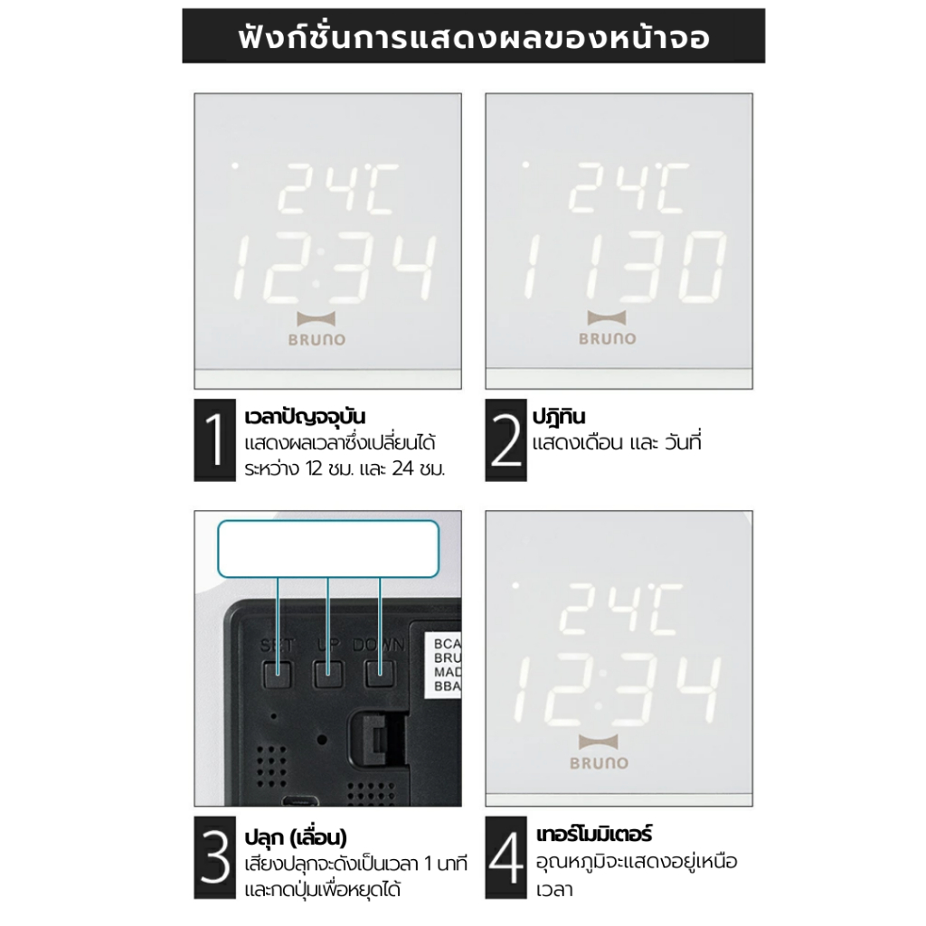 BRUNO Cloud Clock LED BCA030 นาฬิกาตั้งโต๊ะก้อนเมฆ นาฬิกา LED