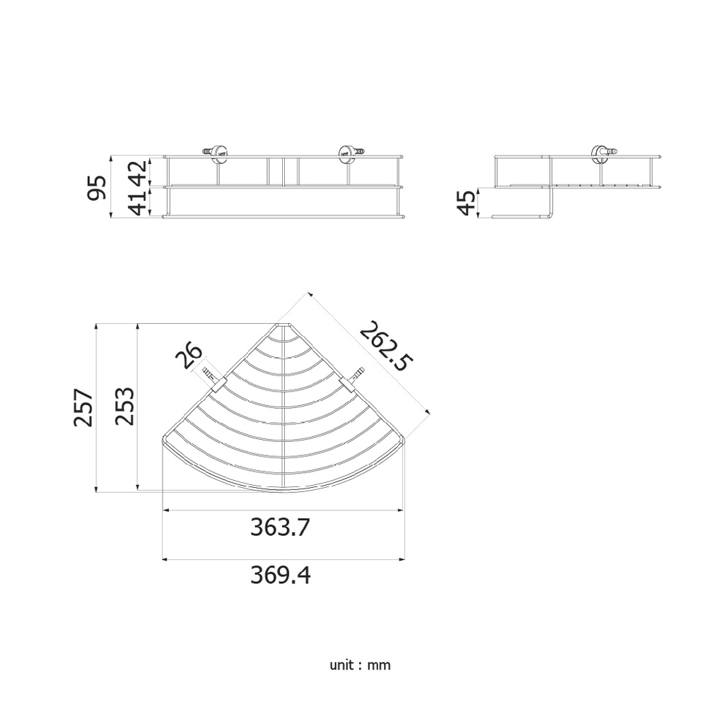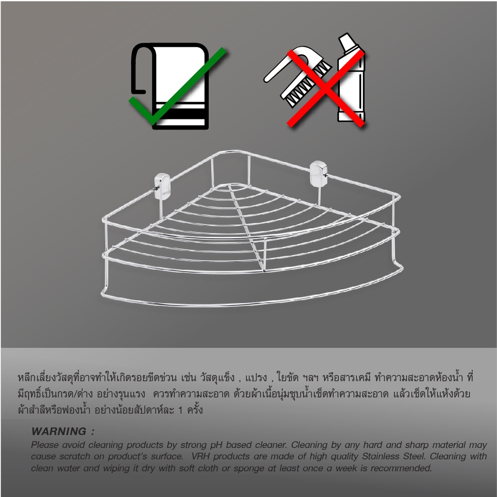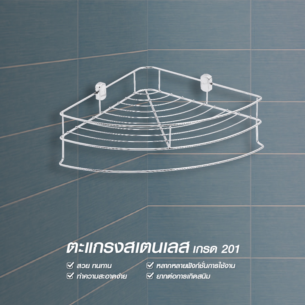 HOY ตะแกรงวางของทรงโค้งเข้ามุม 1 ชั้น HWHOY-H103A ตะแกรงเอนกประสงค์ ตะแกรงเข้ามุม