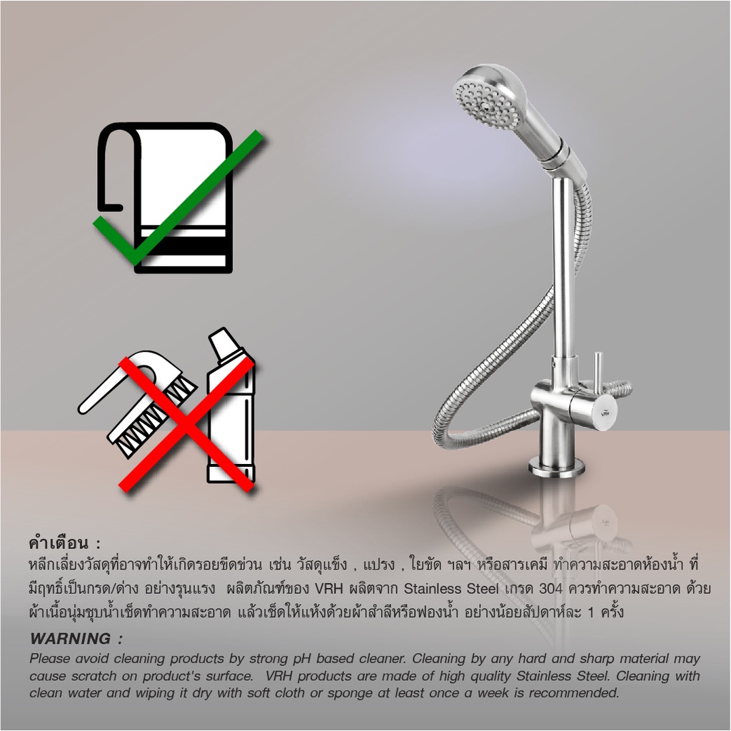 VRH ก๊อกน้ําซิงค์ล้างจาน ก๊อกล้างจาน 1 ทาง 4 หุน รุ่น POCKET หัวฝักบัวแบบตั้งพื้น HFVSB-1000G6