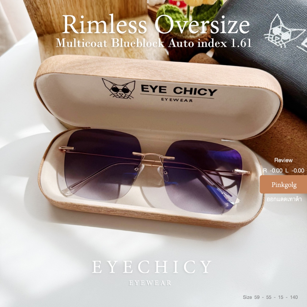 แว่นสายตาไร้กรอบ Rimless ทรง Oversize ย่อบาง1.6 แว่นกรองแสง เลนส์สั่งตัดใหม่ ตัดตามค่าสายตาโดยเฉพาะ
