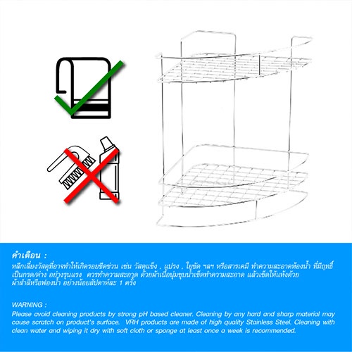 VRH ชั้นวางสองชั้น เข้ามุมโค้งใหญ่ แบบติดผนัง HW105-W105B สเตนเลส 304 ตะแกรงเอนกประสงค์ ตะแกรงวางของ