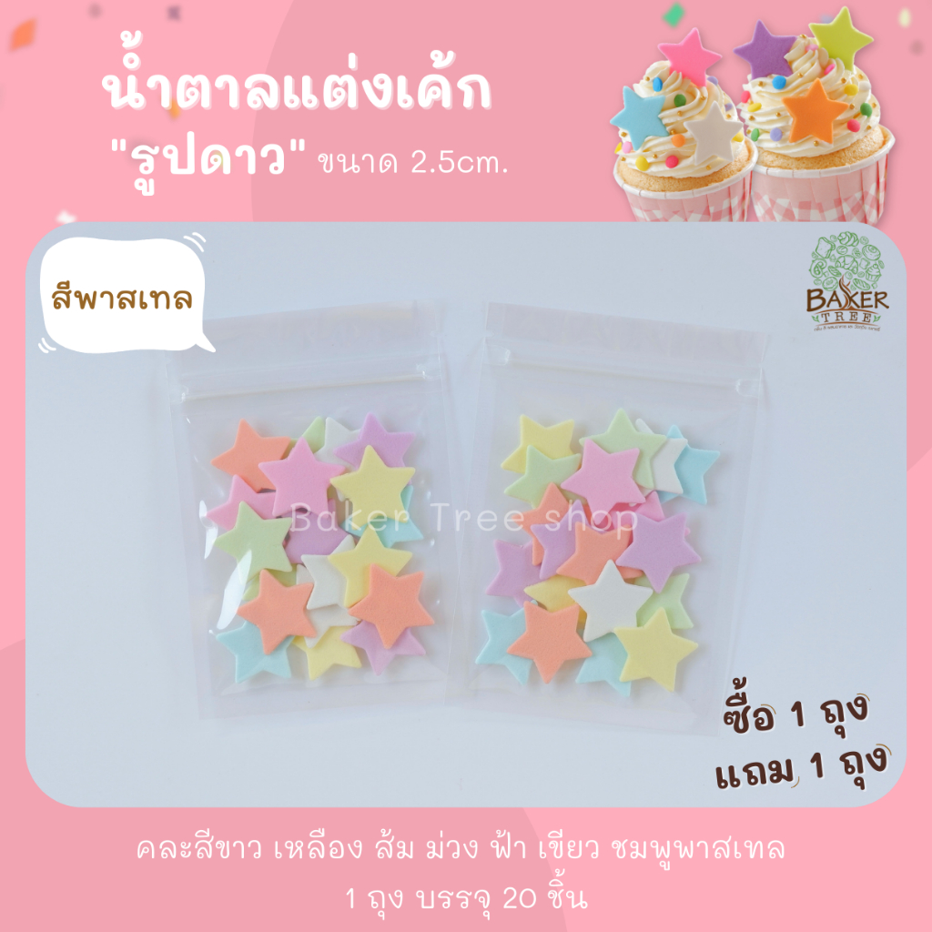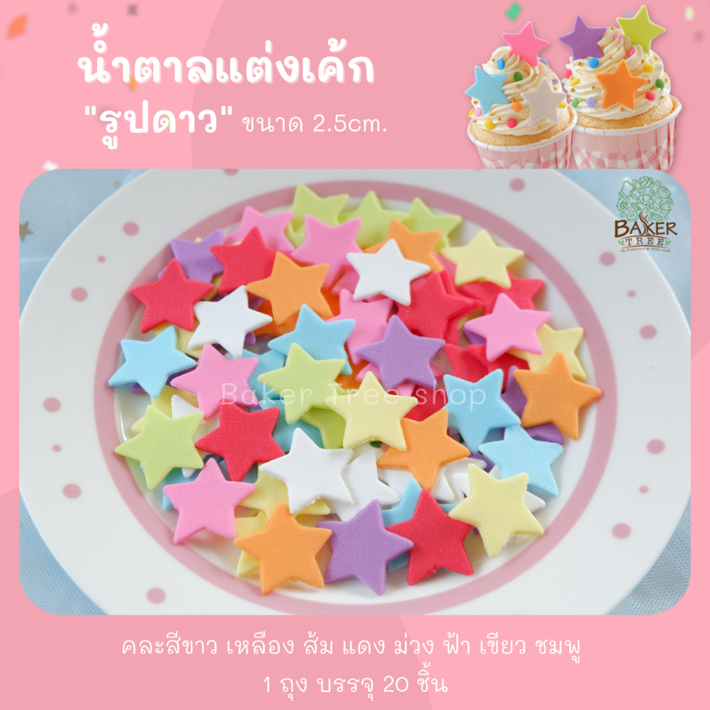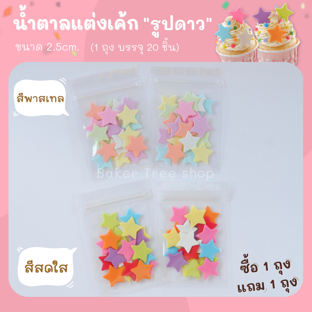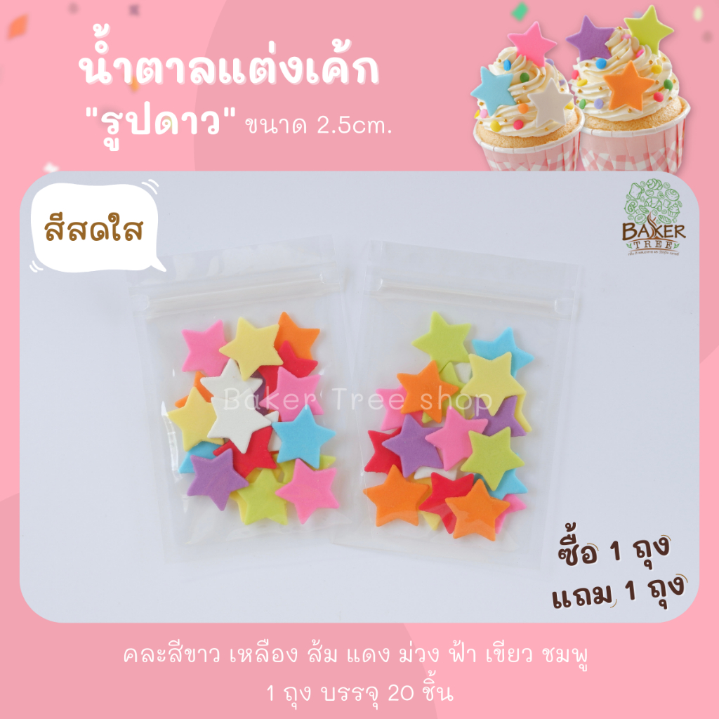 Baker Tree 1 แถม 1‼️ น้ำตาลแต่งเค้ก รูปดาวเล็ก สีสดใสและสีพาสเทล น้ำตาลกัมเพส กลิ่นหอม ทานได้