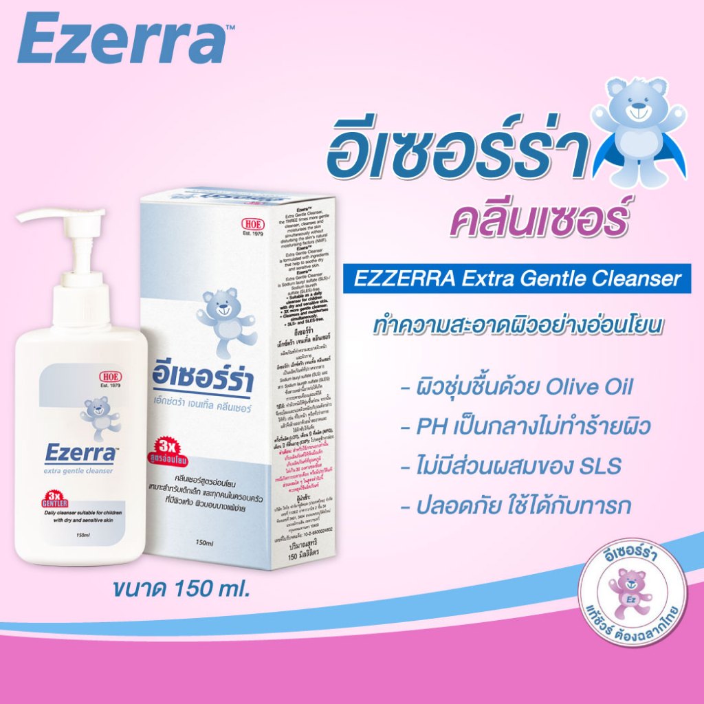 Ezerra Extra Gentle Cleanser 150 ml.อีเซอร์ร่า เอ็กซ์ตร้า เจนเทิล คลีนเซอร์ พลังทำความสะอาดผิว ที่ อ่อนโยนกว่า ถึง3เท่า