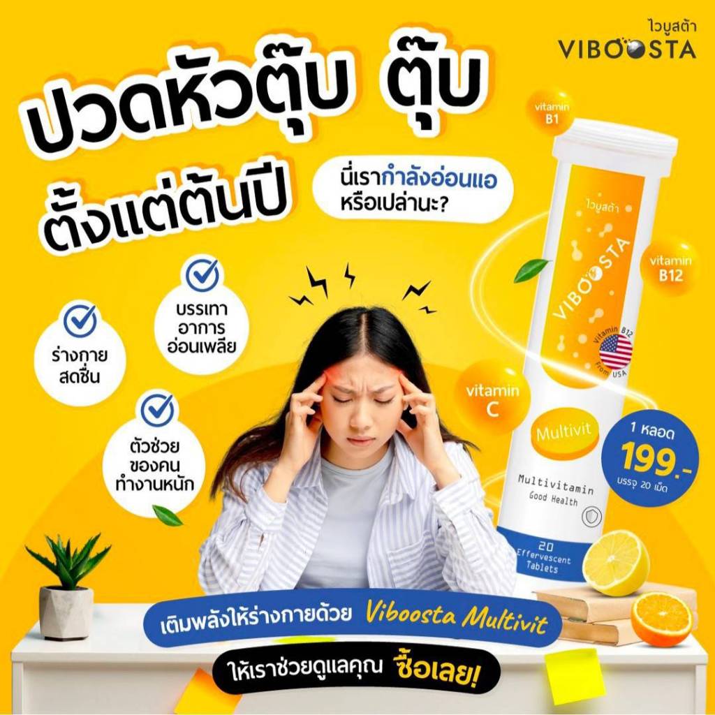 Multivitamin วิตามินรวม บำรุงร่างกาย ลดอาการอ่อนเพลีย 20 เม็ดฟู่ ของแท้100% จากอเมริกา