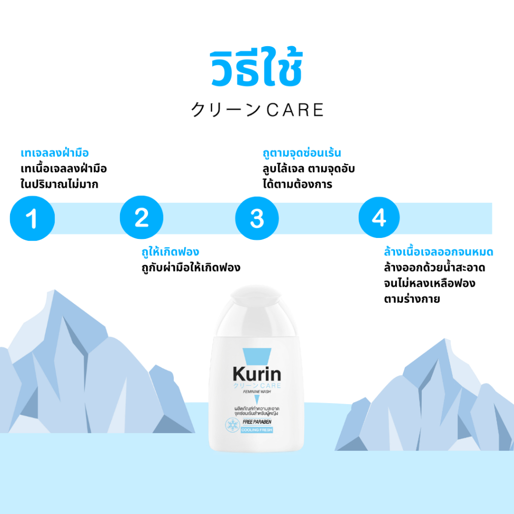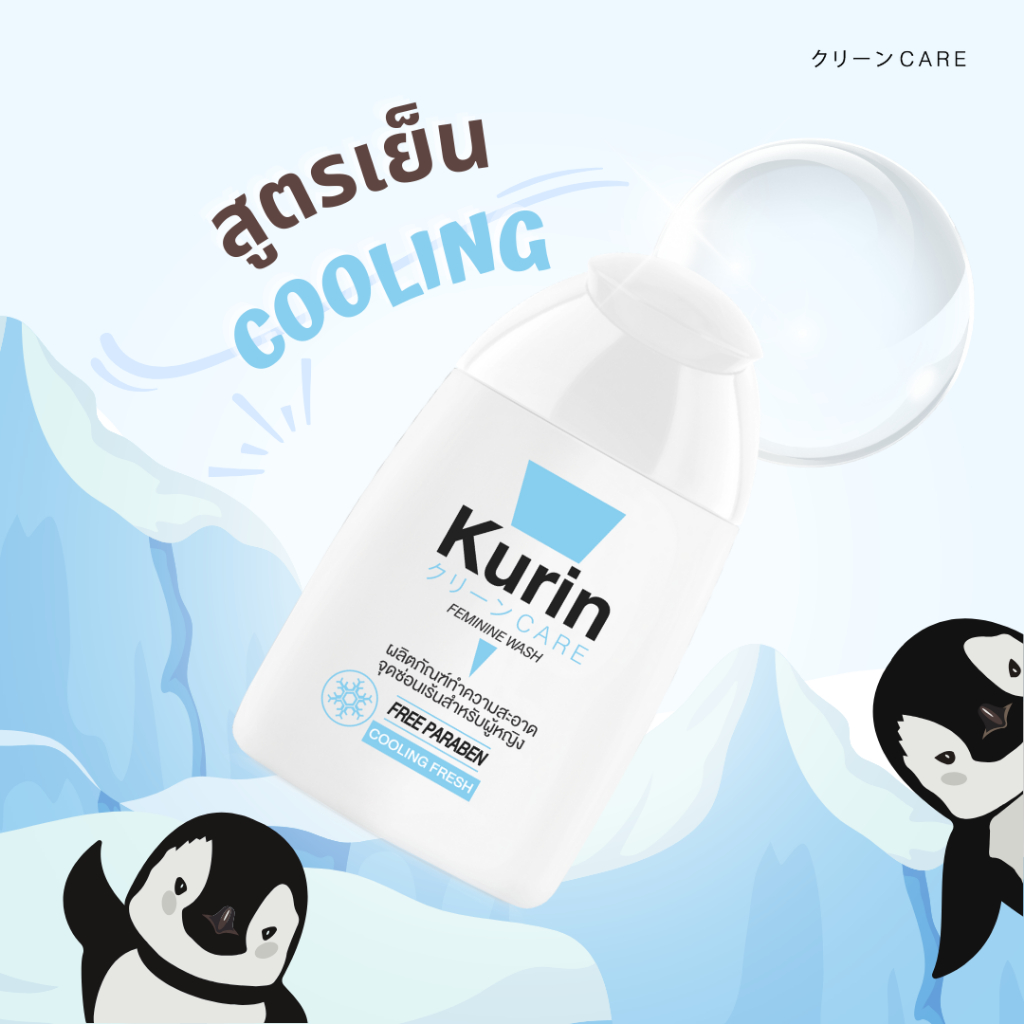 Kurin care feminine wash Cooling ph3.8 (สีฟ้า) เจลทำความสะอาดจุดซ่อนเร้นสำหรับ ผู้หญิง สูตรเย็น 100 ml 1 ขวด