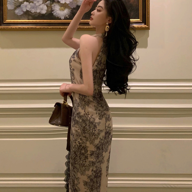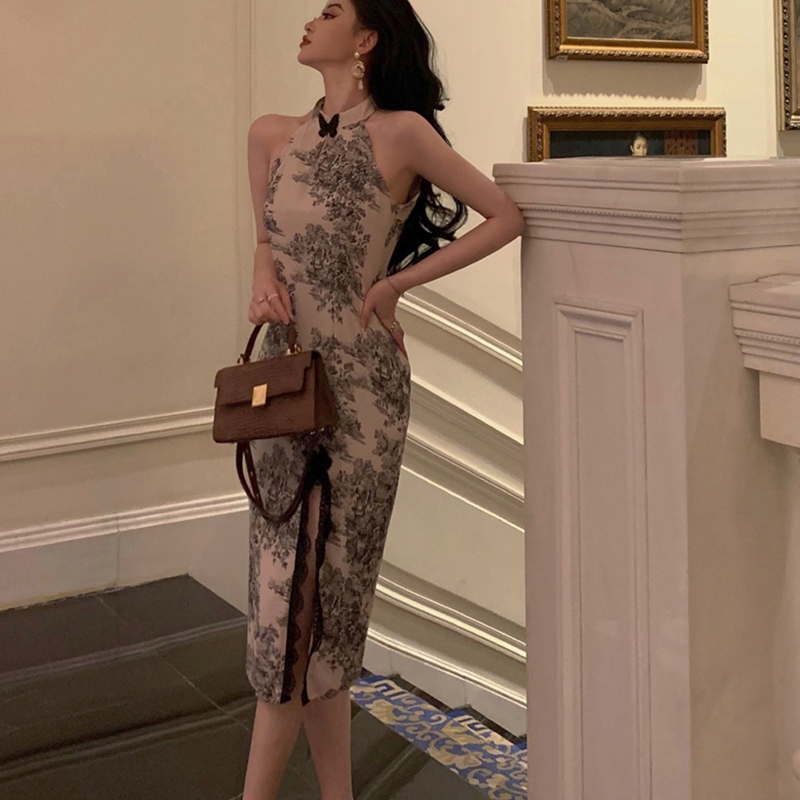 U Gonna S ชุดเดรสกี่เพ้ายาว แขนกุด แต่งผ่าข้าง แต่งลูกไม้ ลายดอกไม้ สไตล์จีน แฟชั่นหรูหรา สําหรับสตรี 2023