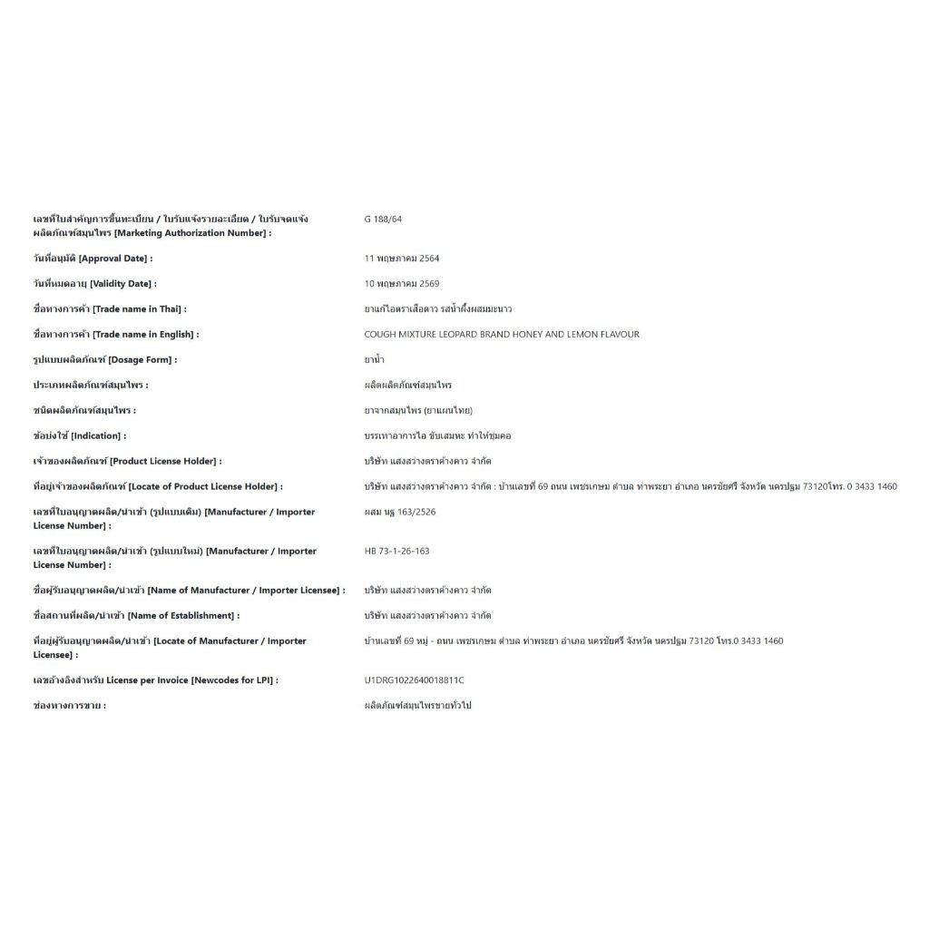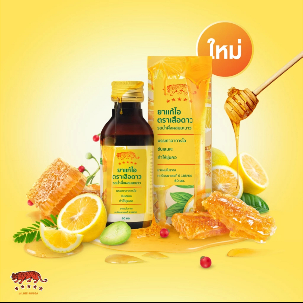 ยาแก้ไอตราเสือดาว รสน้ำผึ้งผสมมะนาว (ขนาด 120 , 60 มล. x 6 ขวด)