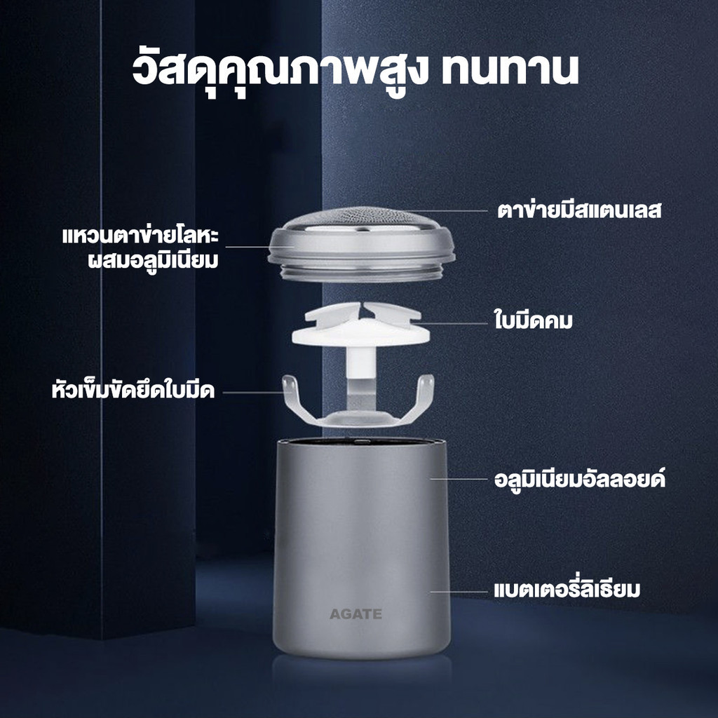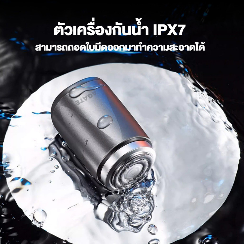【Agate ของแท้】เครื่องโกนหนวดไฟฟ้า เครื่องโกนหนวด IPX7 ใบมีดซักได้กะ รองรับชาร์จเร็ว ทัดรัดและพกพาสะดวก