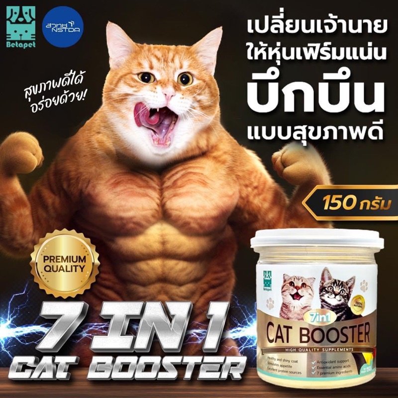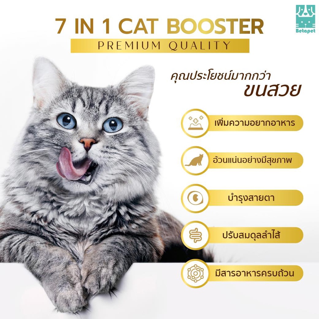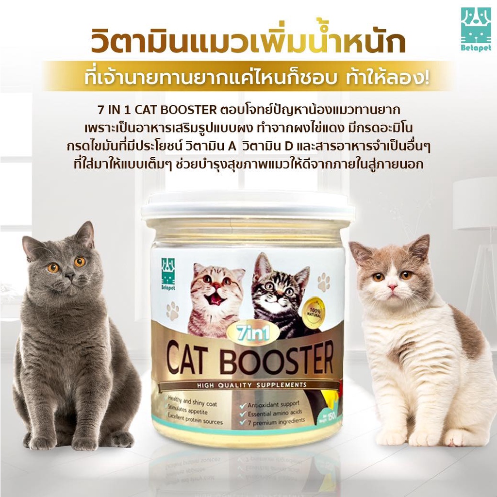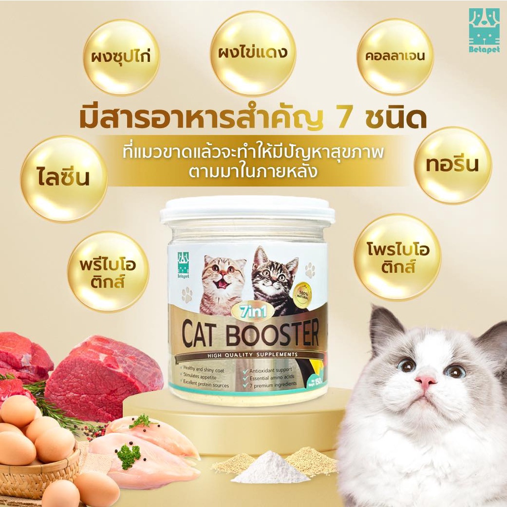 Betapet Cat Booster 7in1 อาหารเสริมน้องแมว ผงโปรตีนโรยอาหาร เพิ่มน้ำหนัก บำรุงขนสวย ลดขนร่วง 150 g.