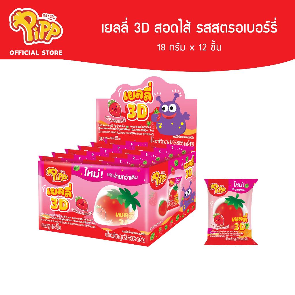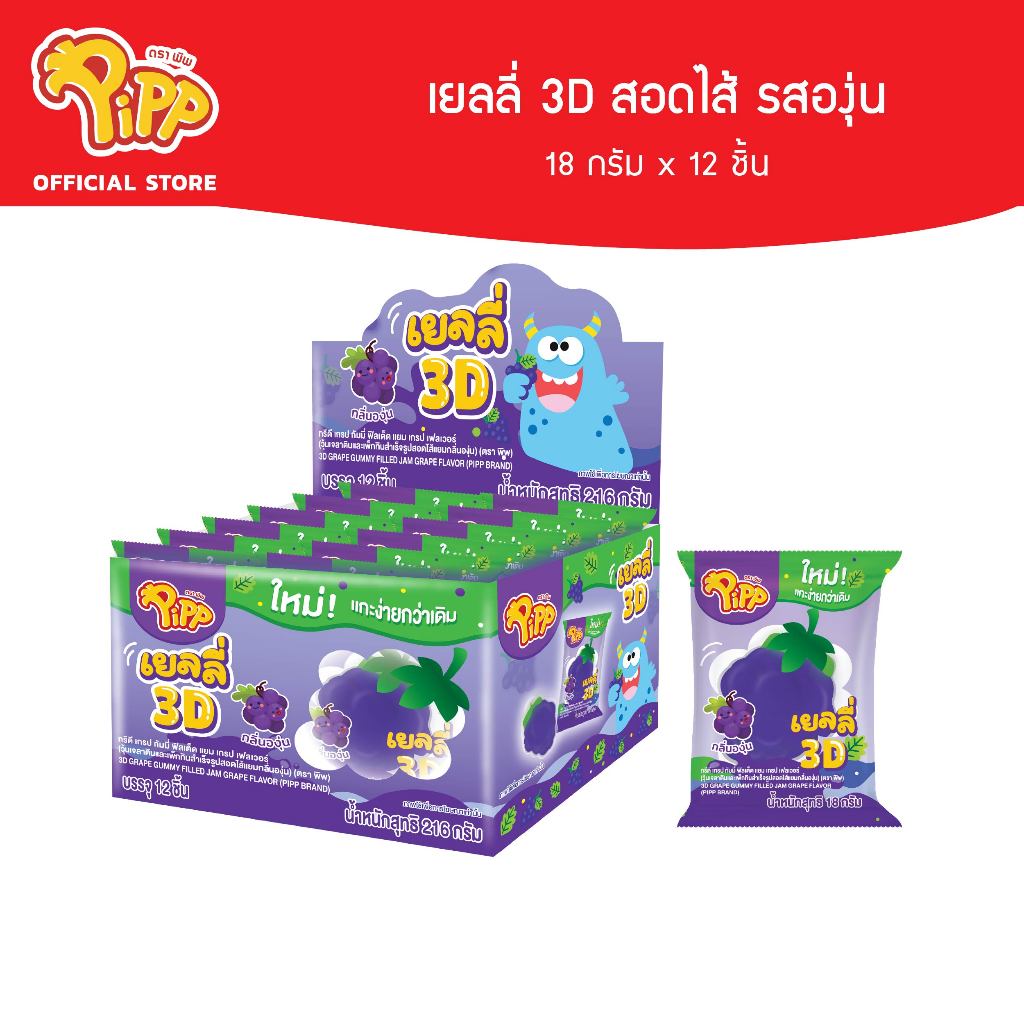 Pipp 3D Gummy Grape filled with Fruit Jam พิพ เยลลี่ 3D สอดไส้แยมรสผลไม้ 18ก x 12ชิ้น (เลือกรสได้)