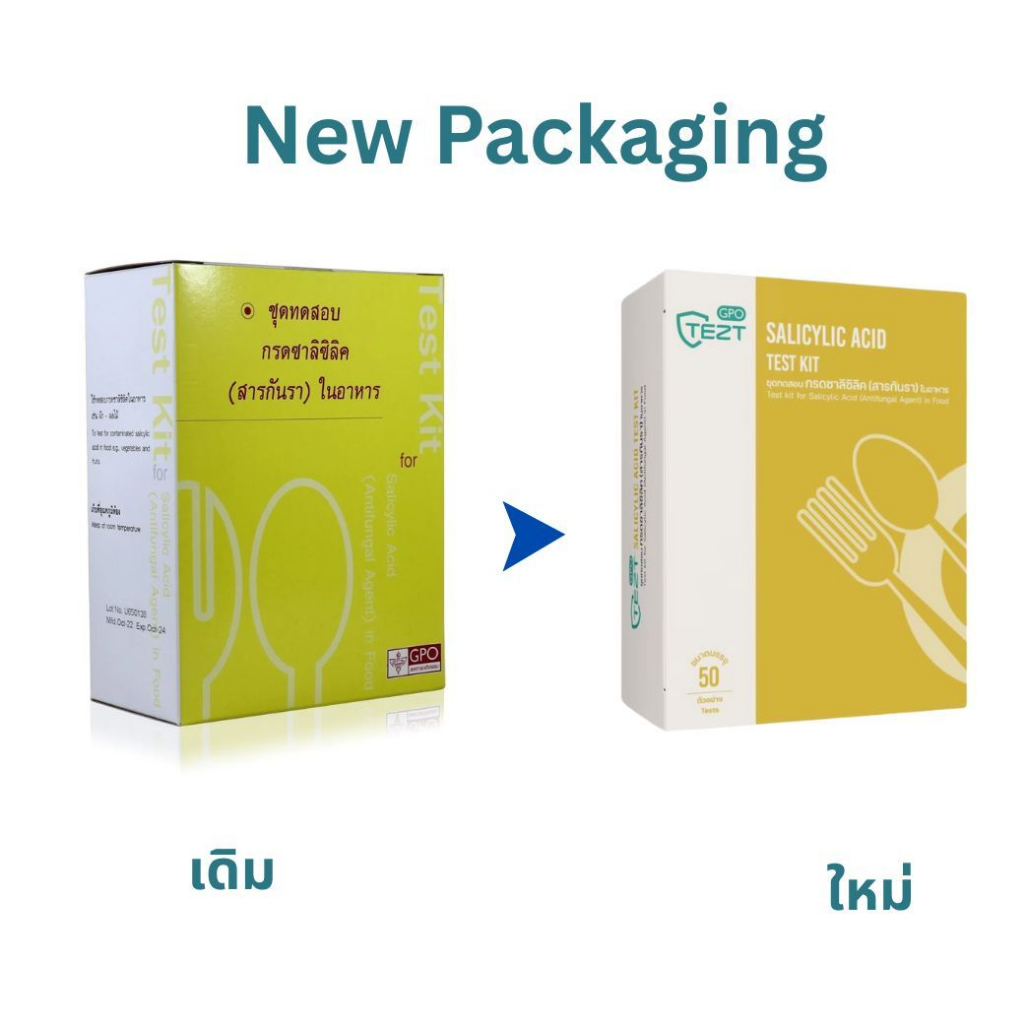 แพ็คเกจใหม่ ชุดทดสอบกรดซาลิซิลิค (สารกันรา) ในอาหาร | ทดสอบได้ 50 ครั้ง