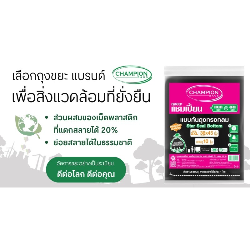 CHAMPION ถุงขยะ สีดำ ขนาด 36x45 นิ้ว (แพ็ค 10 ใบ)
