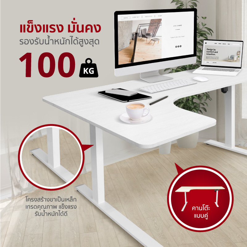 Fennix Ergonomic L-Shaped Desk โต๊ะทำงานปรับระดับไฟฟ้า รูปตัว L | ดีไซน์พรีเมียม | รับประกันศูนย์ไทย 3 ปี
