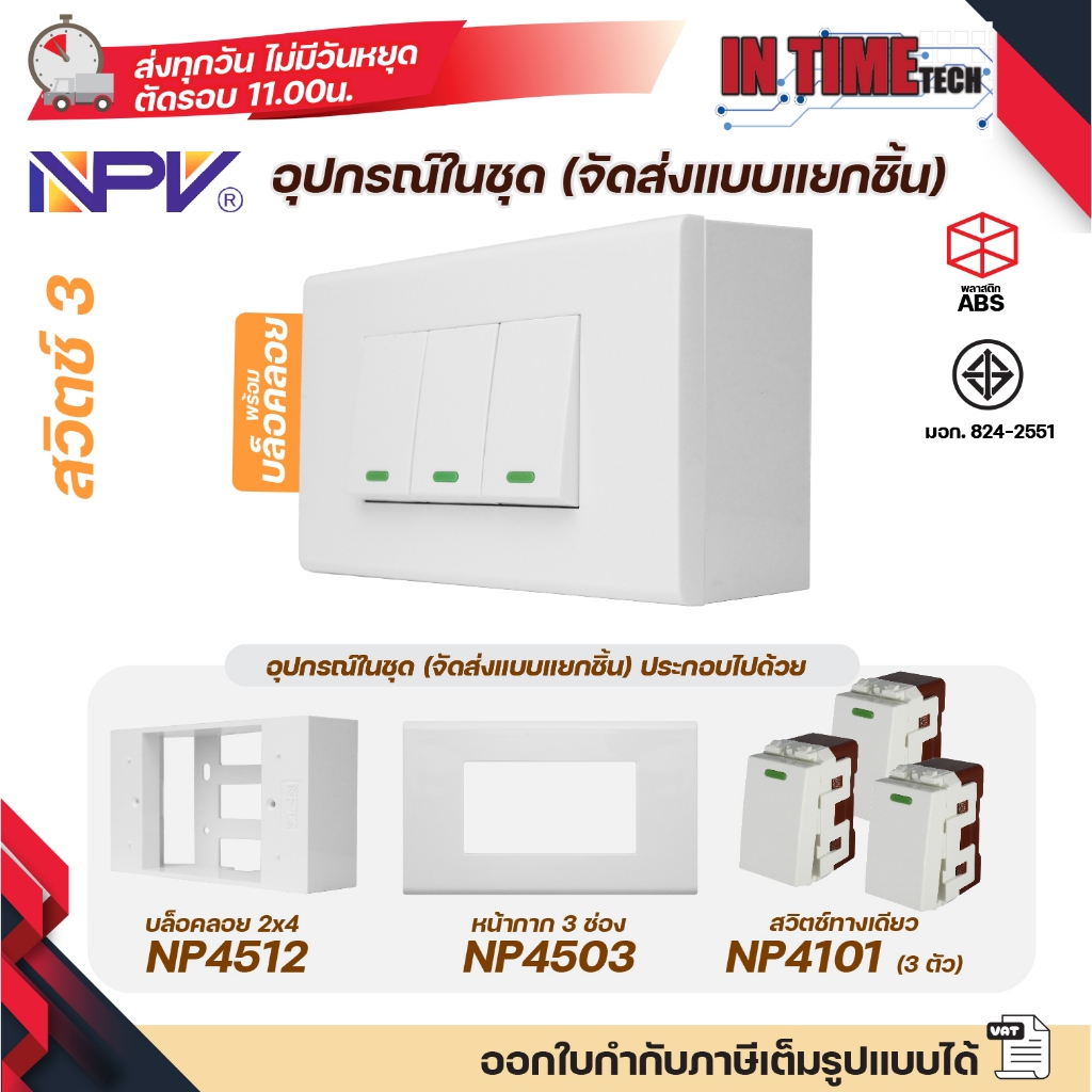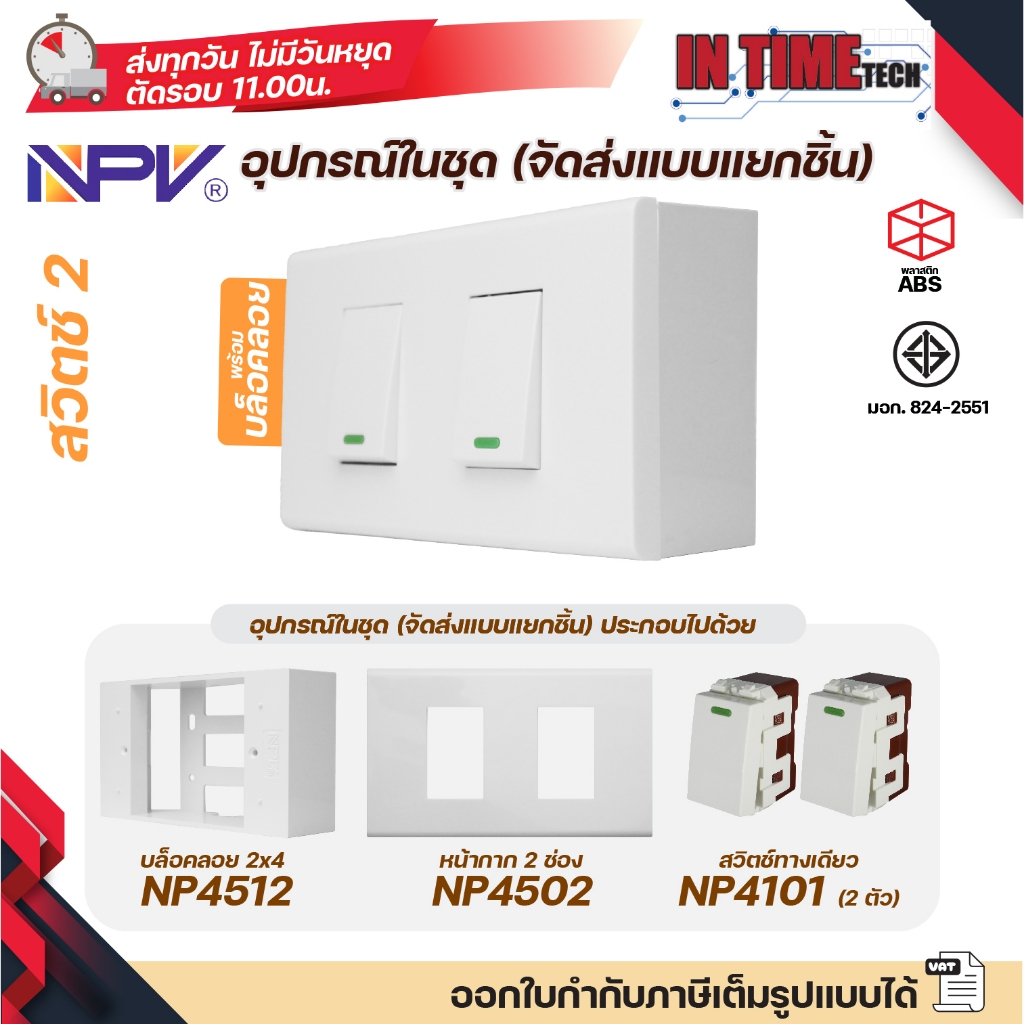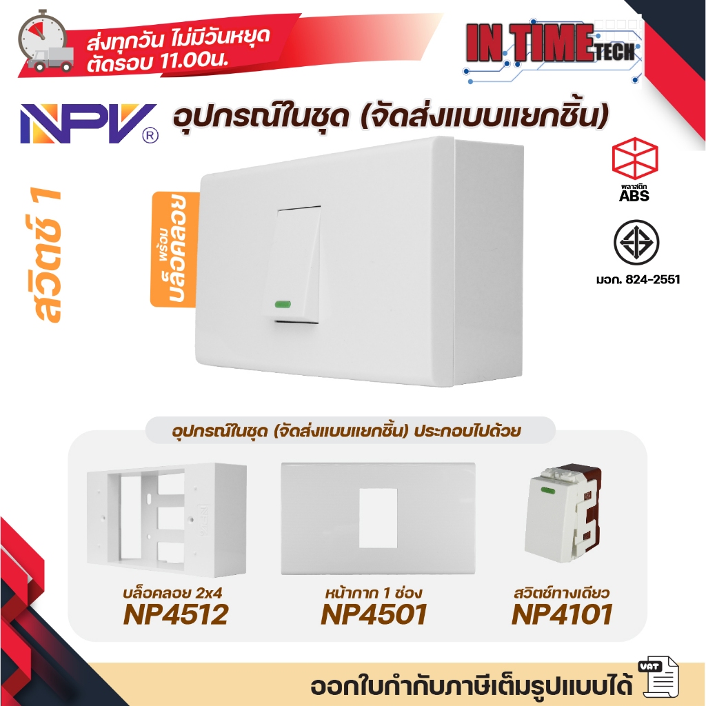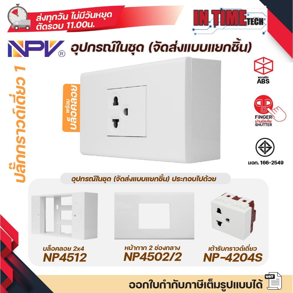 NPV ชุด สวิตช์ ปลั๊ก กราวด์ ม่านนิรภัย เต้ารับ ไฟฟ้า พร้อมหน้ากาก และบล็อคลอย รุ่นใหม่ 2x4 หน้ากาก 1-3 ช่อง