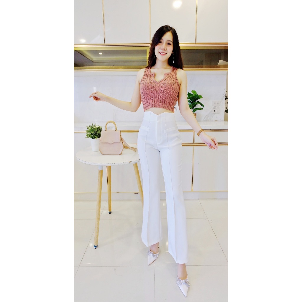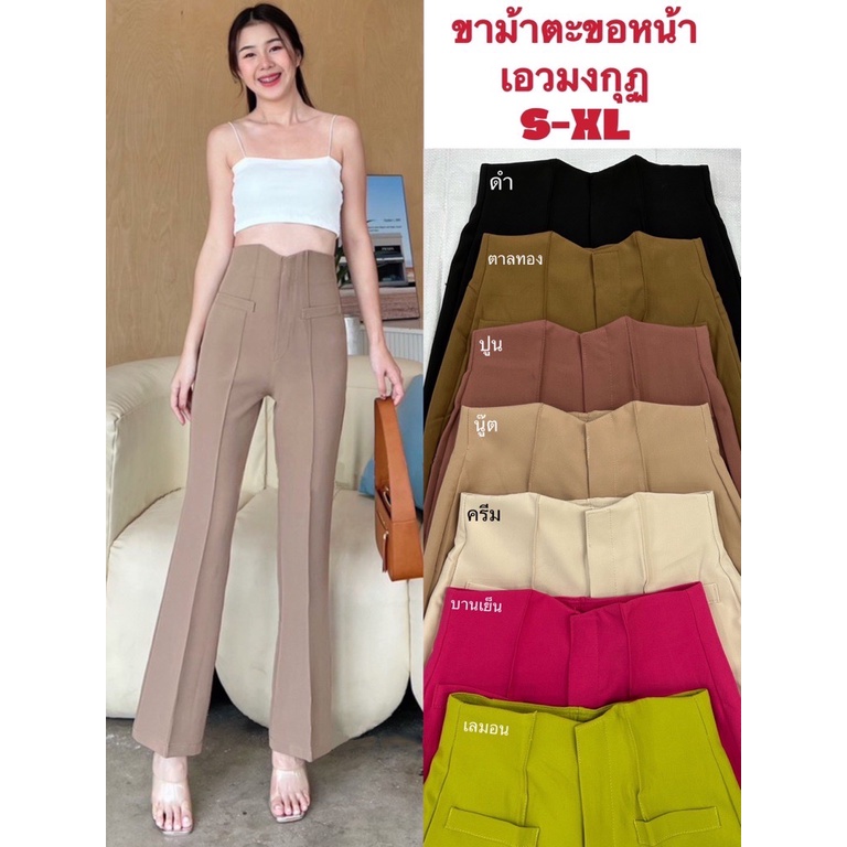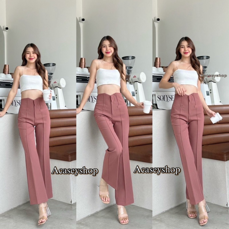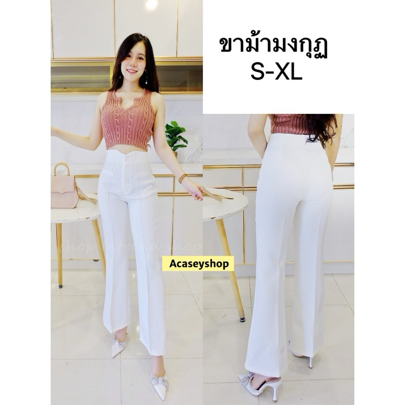 Acasey กางเกงขายาวผู้หญิง ขาม้า ตะขอหน้า เอวมงกุฎ ไซส์ S - XL