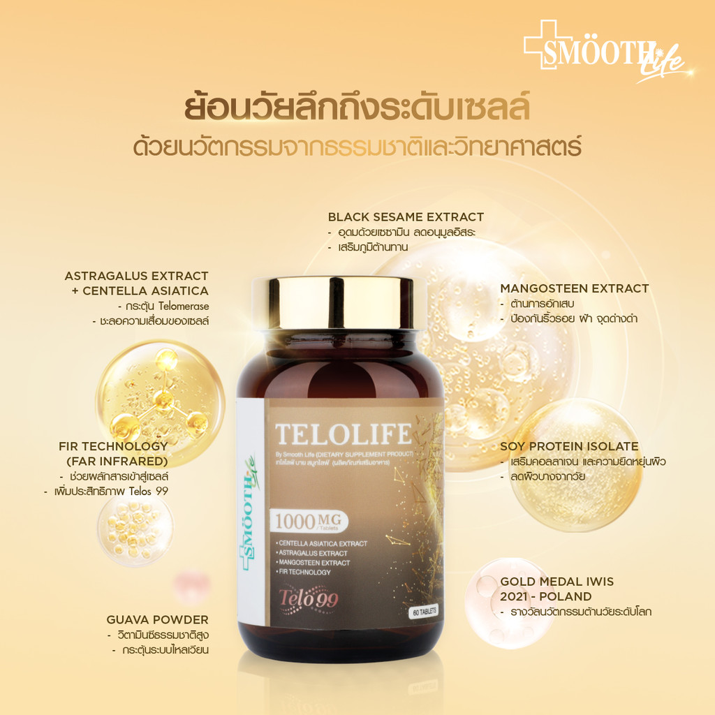 [แพ็ค 3] Smooth Life Telolife 60 เม็ด ต่อต้านอนุมูลอิสระ ชะลอความเสื่อมของร่างกาย บำรุงผิว กระจ่างใส