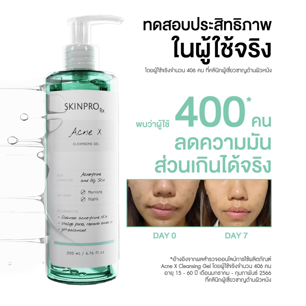 SKINPRO Rx Acne X Cleansing Gel คลีนซิ่งเจลสูตรสำหรับผิวมัน/เป็นสิว ลดการเกิดสิว ไซส์ใหญ่ 200ml.
