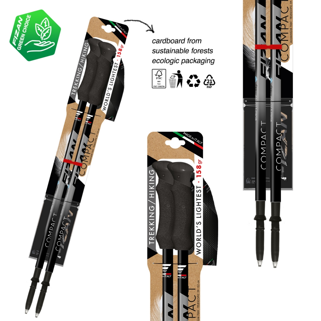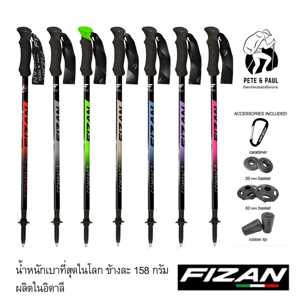 ไม้เท้าเดินป่า Fizan Compact 3 (1คู่) ผลิตในอิตาลี หนักเพียงข้างละ 158 กรัม แบบ 3 ท่อน