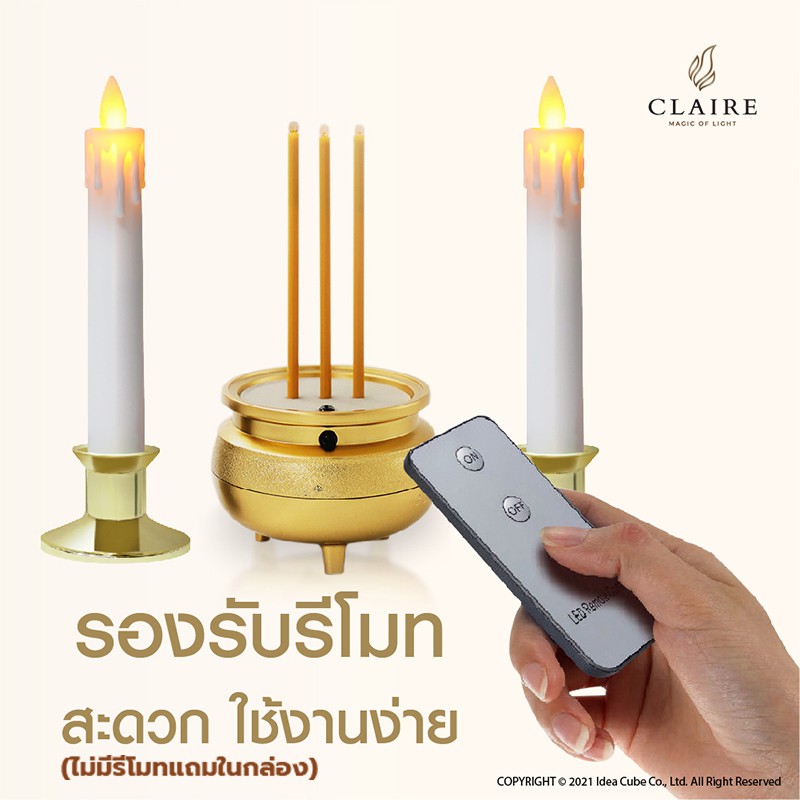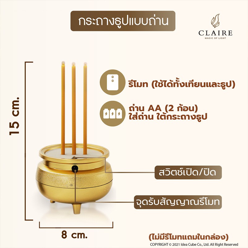 แคร์ล ธูปไฟฟ้า LED สูง 15 ซม. ธูปไฟฟ้า 3 ดอก สีทอง ใส่ถ่าน AA